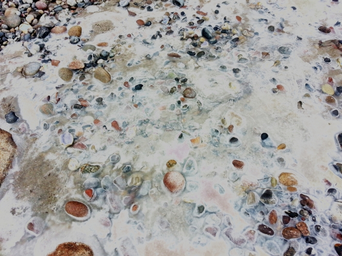 Wasser, Eis und Steine in einer engen und intensiven Verbindung. Einer gemeinsamen Form von Verbundenheit für den Moment. Vielfältig waren Formen zu sehen, die auch mit Mühe nicht von uns selbst erdacht und erzeugt werden könnten.