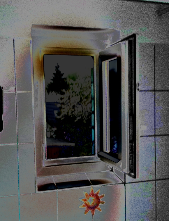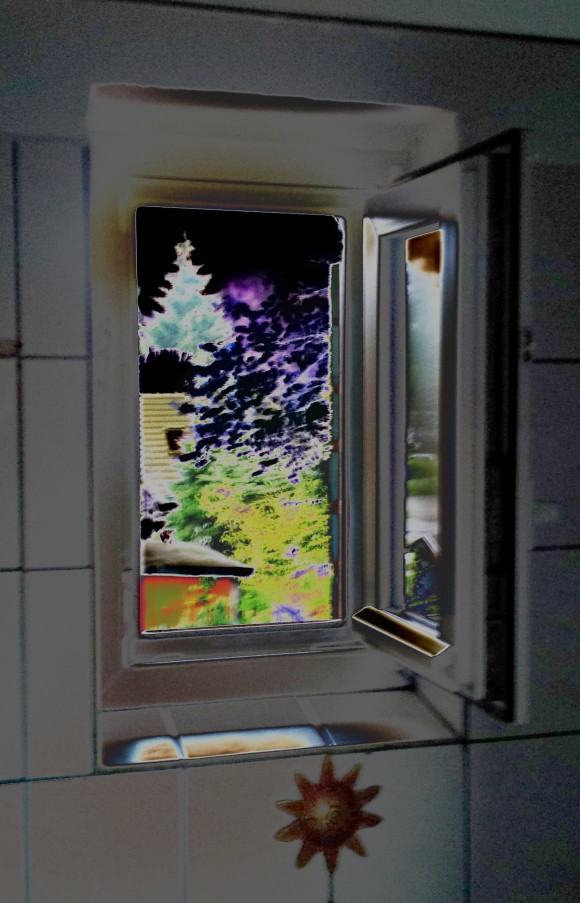 Nun aber, ich rein ins Badezimmer, vorbei am Fenster. Sieht fast aus wie immer, die Farben draussen kommen wir komisch vor, ich stoppe abrupt und schaue noch einmal zum Fenster.