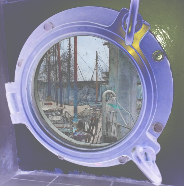 Ein anderes Bedürfnis trieb mich auf die Toilette. Abrupt wurde ich konfrontiert mit Lücken in der scheinbar so klaren Trennwand zwischen "drinnen + draussen": Bullaugen mit der Möglichkeit, diese zu öffnen und zu schliessen. Lücken, durch welche die so herbeigesehnte klare Trennung wieder aufgehoben wurde.