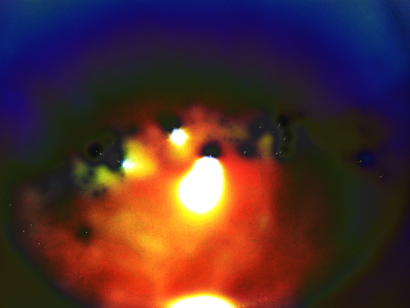 Das Ur-Universum war fürchterlich heiss und brodelte vor sich hin, bald gab es eine ganze Reihe von knospenden Galaxien, erst nur kleine dunkle Punkte.